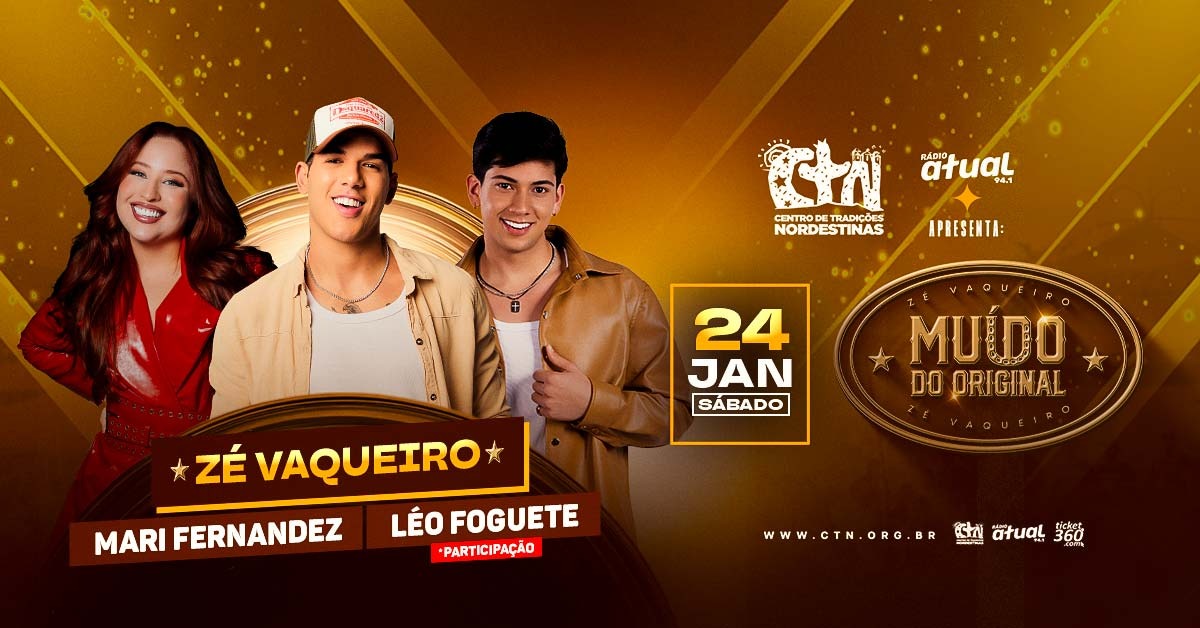 Um dos maiores nomes da música nordestina da atualidade, Zé Vaqueiro se prepara para mostrar a essência do muído de vaquejada para São Paulo ao lado de Mari Fernandez, com participação especial de Léo Foguete. O evento acontecerá no próximo sábado (24) no Centro de Tradições Nordestinas (CTN) e os últimos ingressos estão à venda no Ticket 360.